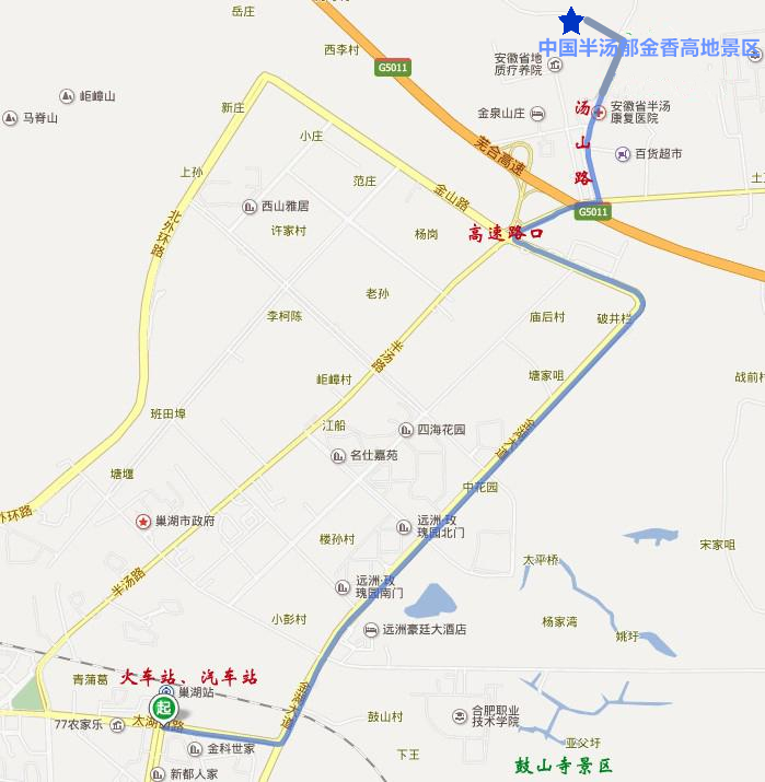 1、步行至火车站站,乘坐9路至北门转盘站下车,转乘3路,在半汤疗养区站下车