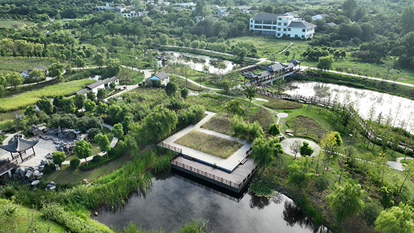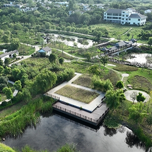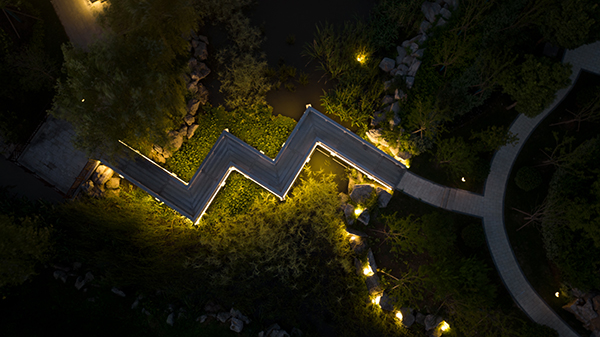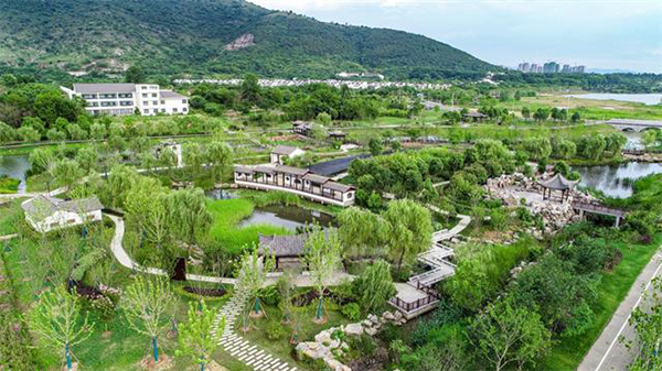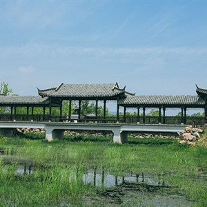 廊桥生态岛项目总面积322.5亩,包含廊桥、七星池景观带、甘泉湾等3个景点。该项目整体设计风格秉承传统中式园林优雅的造园理念,以水为主要景观轴线,对现状廊桥进行边坡修缮、河底清淤、湿地植物种植等改造提升。采用游廊、拱桥、亭桥、漏窗等常见的中式园林建筑形式点缀,将江南园林自然质朴、清新素雅诗情画意,完美融入到半汤秀丽的自然山水景观中。