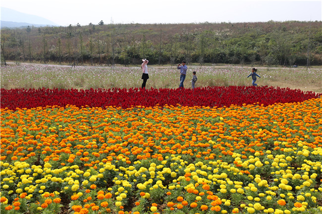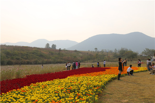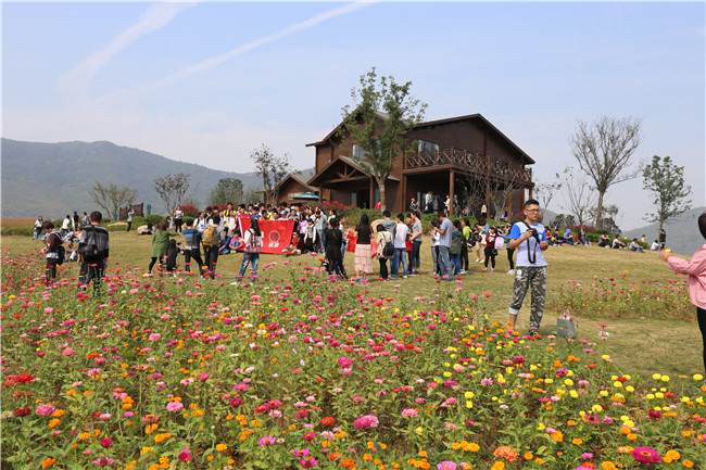 近来秋高气爽,鸟语花香,正是秋游的好季节。周末,郁金香高地景区迎来踏青赏花高峰。