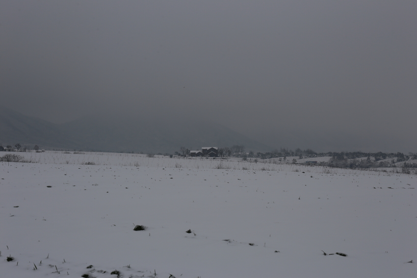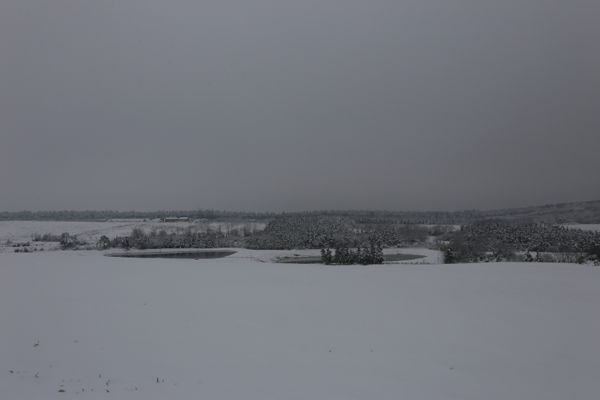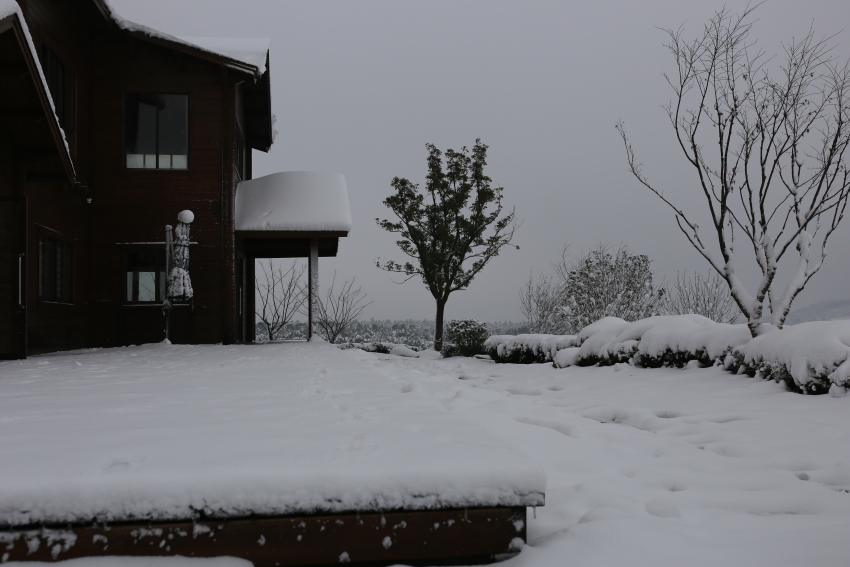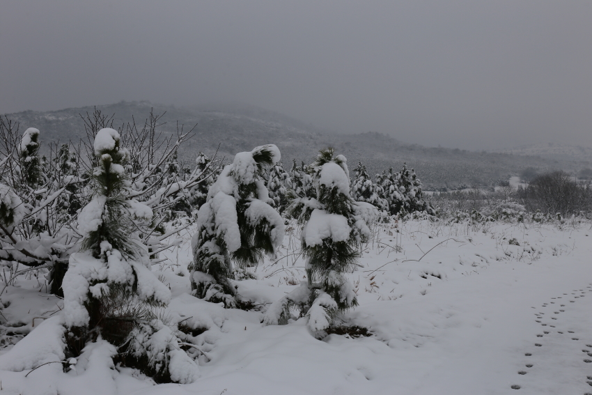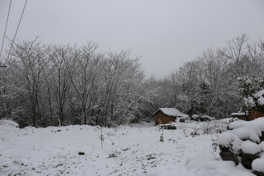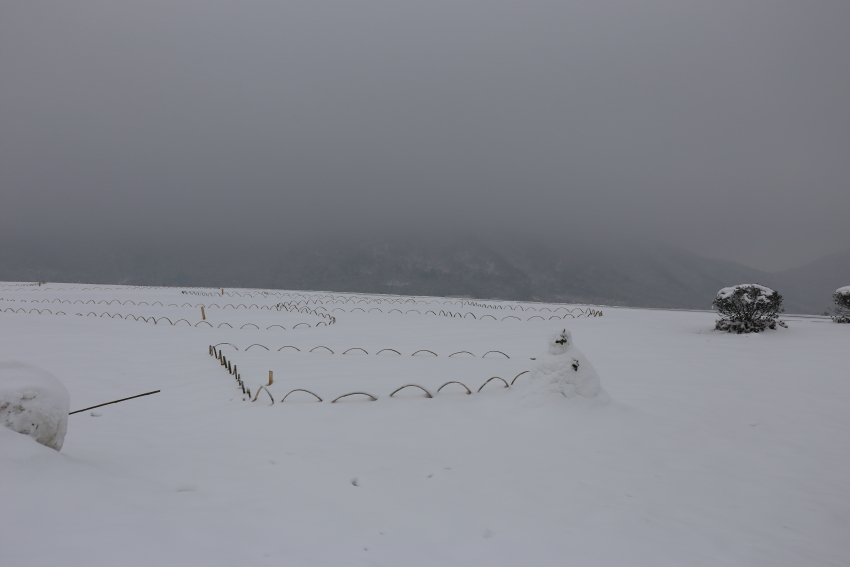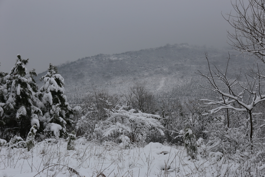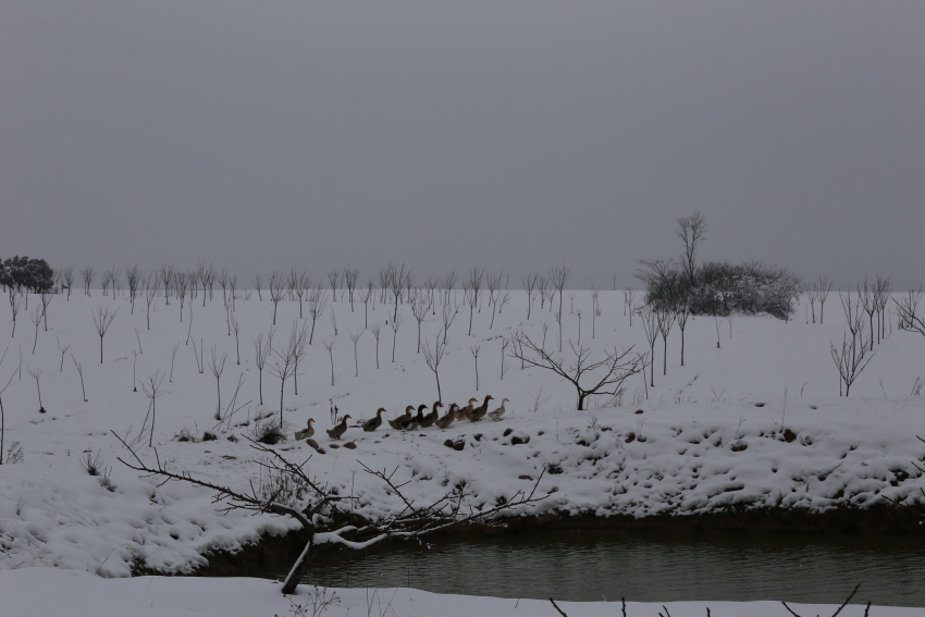 连绵三日大雪后,郁金香高地被装点成了一个冰雪的幻境。无垠的白雪与灰白色天空连成一片,时而让人想起《冰雪奇缘》中的瑰丽王国,时而又想起《情书》中藤井树遥遥地呼唤;峰回路转后有种“千山鸟飞绝,万径人踪灭”的旷远,猛然四顾又有种《智取威虎山》中林海雪原的壮阔。行于其中可见“闻声数点寒鸦起,远村近舍犬皆惊”之景,自有不同于城市的山野之趣。
