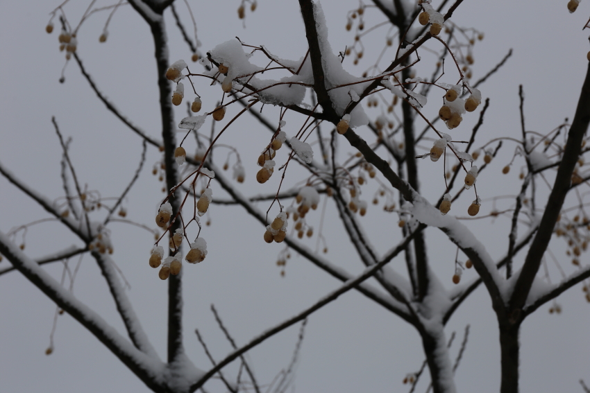 光秃的树枝被冰雪覆盖,成了一株傲然独立的冰树