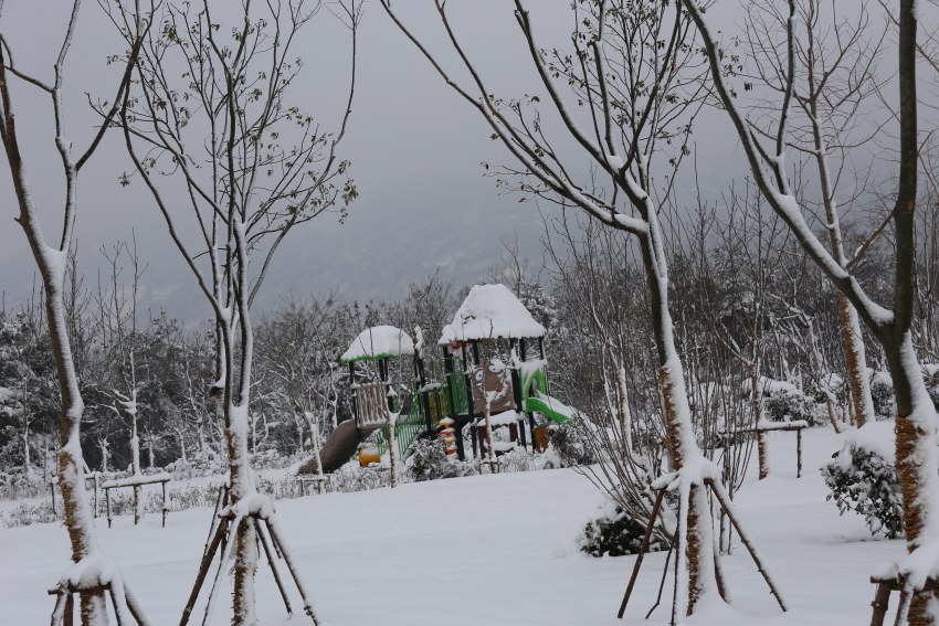 儿童野趣园中的设备正等待着雪过天晴后的第一批游客
