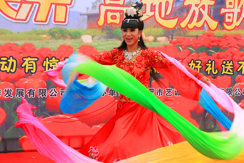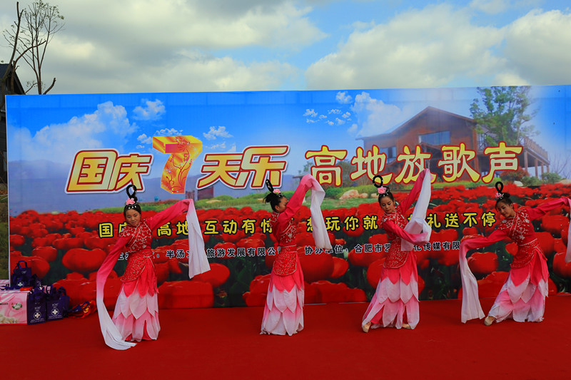 假日期间,恰逢天公作美,郁金香高地景区为庆祝祖国67岁华诞,也为欢迎广大游客的到来,于节日期间在琴湖举办了名为“国庆7天乐,高地放歌声”的演出。表演内容丰富,有歌舞表演、乐器演奏、反串表演等,还与群众进行有奖参与互动,将整个氛围推上高潮,得到了游客朋友们的高度赞美。