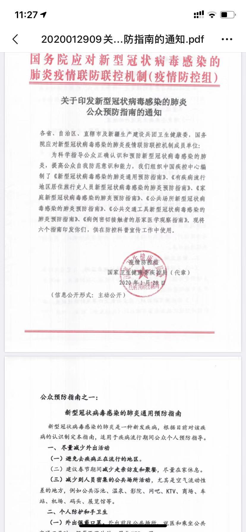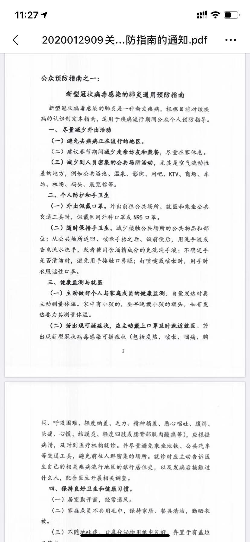 关于印发新型冠状病毒感染的肺炎公众预防指南的通知