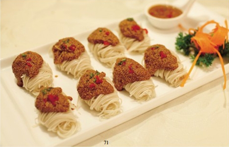 此菜以湖产白米虾,银鱼为主要材料而冠名“双珍”。系创新湖鲜菜肴,以色丽大方、米虾脆香、银鱼滑嫩、造型别具一格而显特色。制作要点: 首先将白米虾下入熟油锅中爆(炸)至外壳发脆,捞出后沥干油,置锅内佐以“糖醋口味”炒制,先装入圆盘中央...